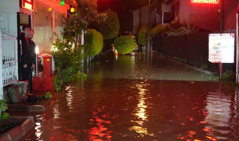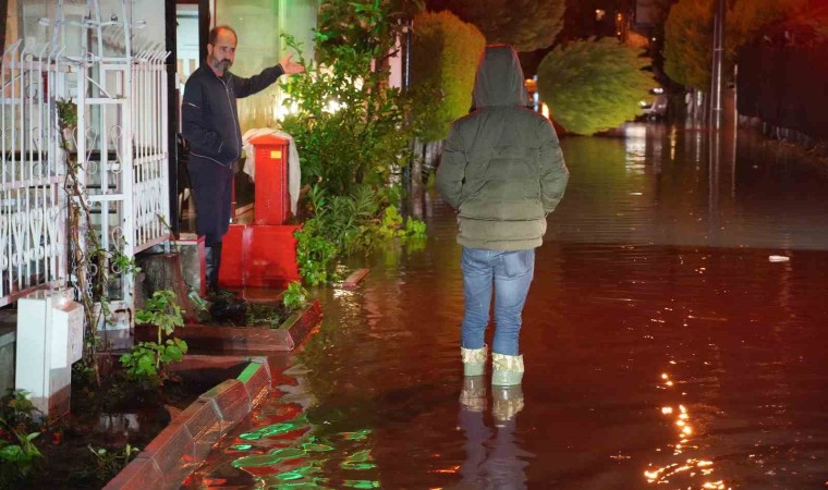 Kazdağları’ndan gelen yağmur sularından dolayı Altınoluk Mahallesi’nde yol seviyesinin altında kalan onlarca eve ve iş yerlerinin zemin katlarını su bastı.