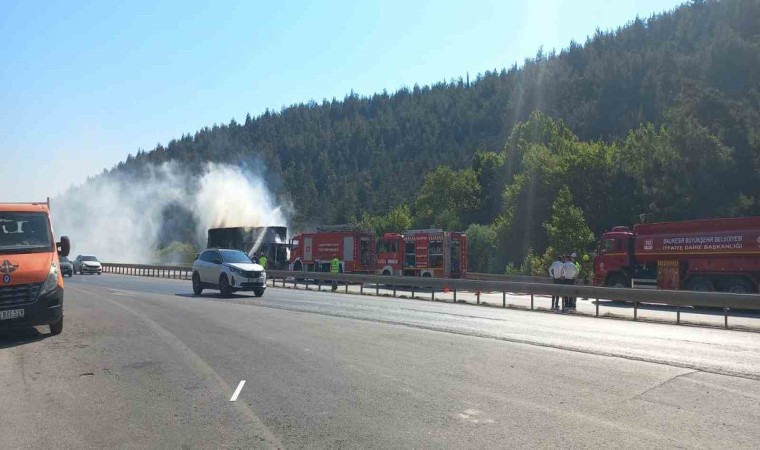 Olay, Balıkesir-Bursa karayolunda meydana geldi. Feyzeddin Akay idaresindeki 63 ADY 343 plakalı tır, Değirmenboğazı mevkiinde henüz belirlenemeyen bir sebepten dolayı bir anda alev aldı. Kısa süre içerisinde büyüyen yangın, tırın römork kısmında bulunan kağıt balyalara sıçradı. Yoldan geçen sürücüler tarafından 112 Acil Servisine gelen çağrı sonrası olay yerine çok sayıda itfaiye sevk edildi. İtfaiye erlerinin zamanında müdahalesi ile yangın kısa sürede söndürülürken, tırda büyük hasar oluştu. Bir süre kapanan yol, tırın kaldırılmasıyla tekrar trafiğe açıldı.