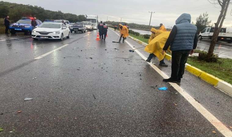 Kazanın İzmir istikametinden gelen bir otomobilin orta refüjü aşarak Çanakkale istikametinden gelen araçların geldiği şeride geçmesiyle meydana geldiği belirtildi.