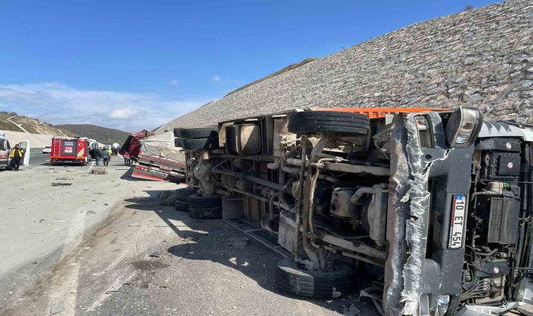 Edinilen bilgilere göre, İzmir-İstanbul otobanının Balıkesir’in Savaştepe ilçesi Kurudere mevkiinde bugün saat 13.30 sularında meydana gelen kazada, İstanbul istikametine ilerleyen T.D. (38) idaresindeki 10 ET 454 plakalı tır ile önünde seyreden E.E. (35) yönetimindeki 41 AKA 289 plakalı tıra arkadan çarptı. Tırın direksiyon hakimiyetini kaybeden E.E bariyerlere çarparak yoldan çıktı. 10 ET 454 plakalı küçükbaş hayvan taşıyan tır ise devrildi.