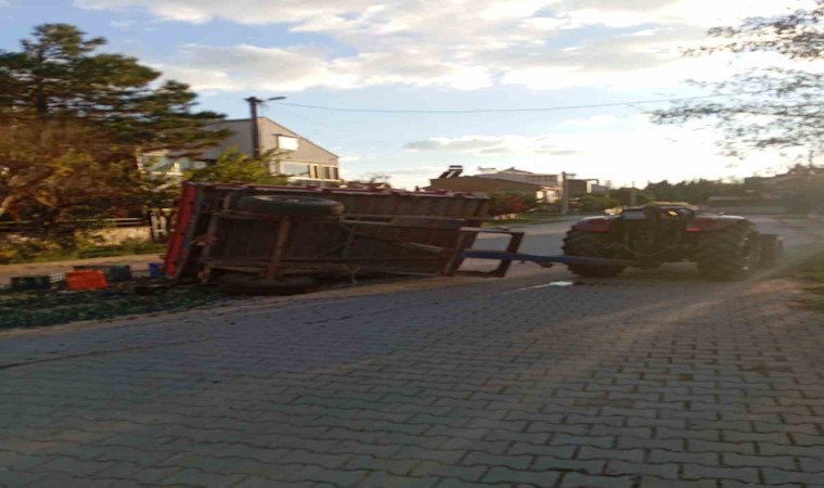 Kaza, Ocaklar Mahallesi Hüseyin Durak Caddesi’nde saat 16.30 sularında meydana geldi. Tuna D. yönetimindeki 10 AGT 496 plakalı zeytin yüklü traktör, ara sokaktan kontrolsüz çıkan bir otomobile çarpmamak için ani manevra yapınca römorku devrildi. İhbar üzerine bölgeye sağlık, itfaiye ve polis ekipleri sevk edildi.