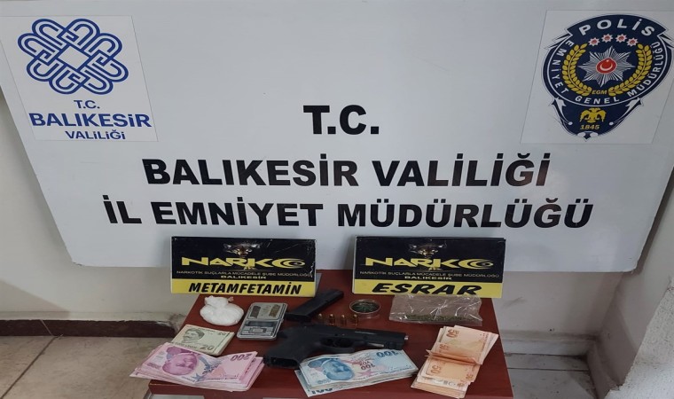 Balıkesir’de polis ekiplerinin ayrı ayrı yaptıkları uyuşturucu operasyonlarında bir araçta 47,93 gram metamfetamin, 2,72 gram esrar, 1 adet hassas terazi, 1 adet uyuşturucu öğütme aparatı, 1 adet silah, bu silaha ait 4 adet fişek, suçtan elde edildiği düşünülen 18 bin 265 lira ele geçirdi. B.A., çıkarıldığı mahkemece tutuklandı.
