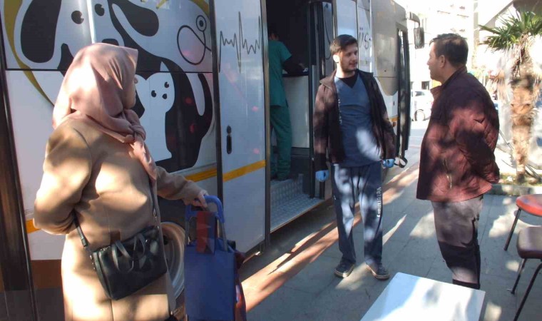 İlçe ilçe gezen VETBÜS Burhaniye ilçesinde can dostlarına sağlık taraması, iç-dış parazit taraması ve kuduz aşısı yaptı. Cumhuriyet Meydanında konuşlanan VETBÜS de Veteriner Hekim Abdülkerim Özdemir, getirilen sokak köpekleri ve kedileri muayene ederken, Veteriner Sağlık Teknikeri Recep Çalım da iç dış parazit mücadelesi ile kuduz aşılarını yaptı. Köpek ve kedi getiren vatandaşlar Büyükşehir Belediyesine teşekkür ederken, Veteriner Hekim Abdülkerim Özdemir de, 20 ilçede hizmet verildiğini ve bu güne kadar 6 bin kedi ve köpeğe şifa dağıttıklarını söyledi. Bu güne kadar 6 bin kedi ve köpeğe hizmet verdiklerini anlatan Veteriner Hekimi Abdülkerim Özdemir; “ VETBÜS ekibi olarak bu günde güzel ilçemiz Burhaniye’deyiz. Her ayın bir gününde farklı bir ilçede olmak üzere hizmet veriyoruz. Bu güne kadar EVBÜS ekibi olarak bir Veteriner hekim, Veteriner teknisyeni, bakıcımız ve şoförümüzle birlikte yaklaşık toplam olarak 6 bin kedi ve köpeğimize hizmet verdik. Bundan sonra da bu hizmetimiz devam edecek. Ne yapıyorsunuz derseniz. Kedi ve köpeklerimize iç dış parazit ve kuduz aşılarımızı yapıyoruz. Bir nevi halk sağlığına hizmet etmiş oluyoruz” dedi. Sude Demir de, “ 4 tane kedi bakıyorum. Fakat aşıları benim için biraz maliyetli oluyor, özel kliniğe götürdüğüm zaman. Ama, Balıkesir’de böyle bir hizmetin olması bizim için çok avantajlı. En azından ayda bir kere geliyorlar. Burada belirli aşılarını burada yaptırabiliyoruz. O yüzden Balıkesir Büyükşehir Belediyesine teşekkür ediyorum” dedi.