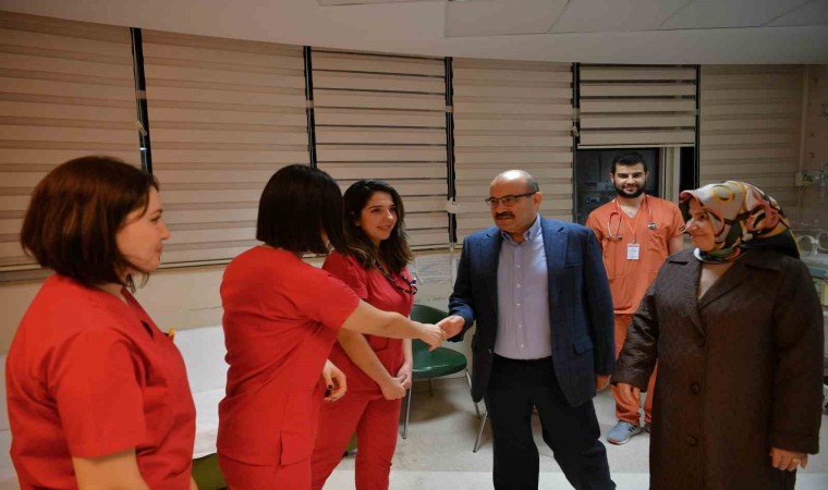 Balıkesir İl Sağlık Müdürü Serkan Kadir Keskin ve Hastane Başhekimi Abdullah Osman Koçak da ziyarette hazır bulundu. Vali İsmail Ustaoğlu, hastane çalışanlarının da yeni yılını kutladı.