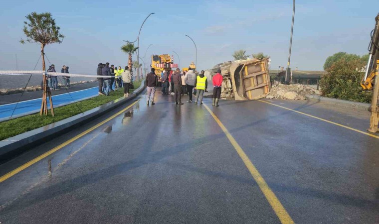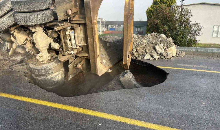 Edinilen bilgiye göre, Balıkesir’in Edremit ilçesi Ülkü Yolu üzerinde hareket eden 26 VF XXX plakalı hafriyat kamyonu, yolun çökmesi sonucu oluşan çukura düştü. Kaza sırasında araç yan yattı.