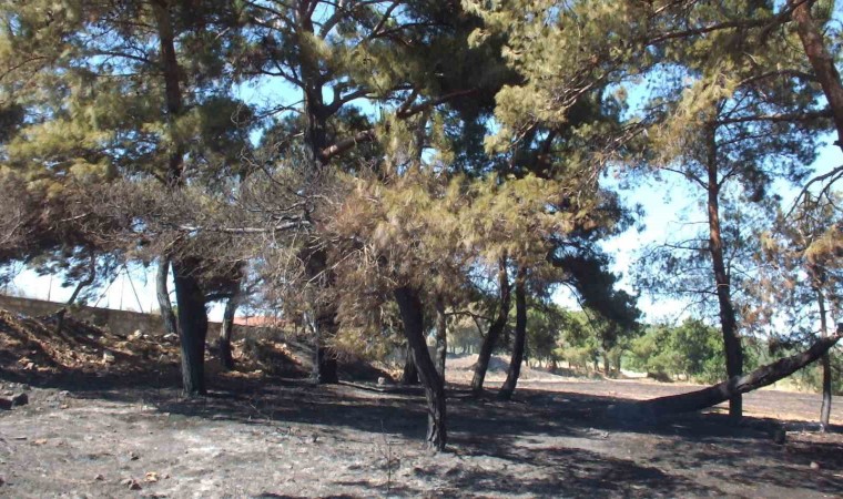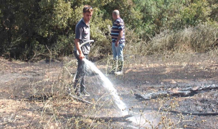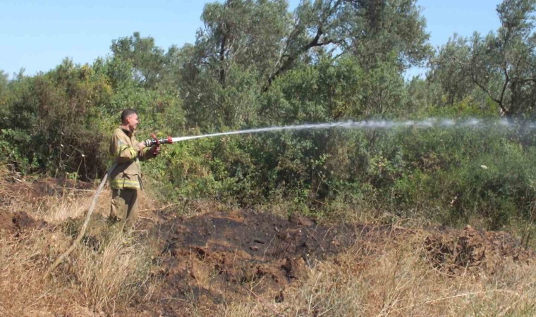 Balıkesir’in Burhaniye ilçesinde çıkan arazi yangınında yüzlerce zeytin ve meyve ağacı zarar gördü.
