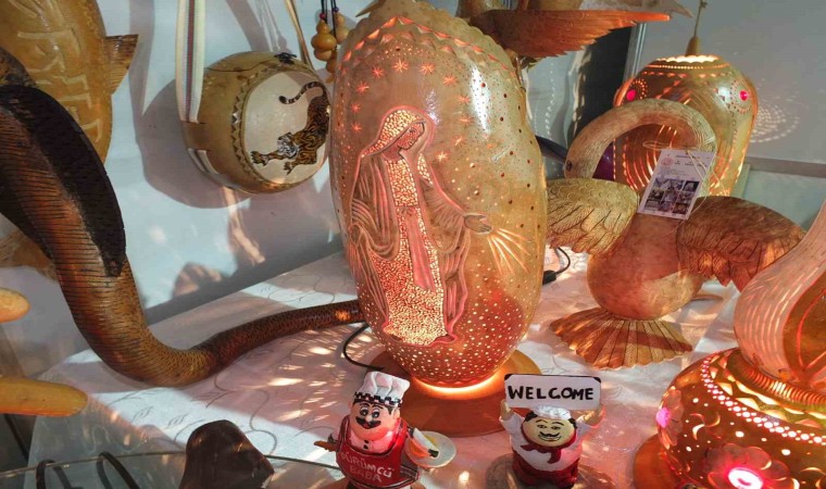 Cevdet Ekmekçi, "Memurluktan emekli olduktan sonra Halk Eğitim kurslarına giderek su kabağı işlemeciliğine merak sardım. 8 yıldır bu işi yapıyorum. Abajurla başladık. Şimdi usta öğretici oldum. Kursiyerlerim var. 8 yıldır devam ediyorum. İmko Tatil Sitesi’nde kurslarımız devam ediyor. Ben artık abajur olayını geçtim. Su kabağından hayvan figürlerine başladım. Burada gördüğünüz gibi tüm hayvanların su kabağı hammaddesi olmak üzere hepsini yapıyorum" dedi.