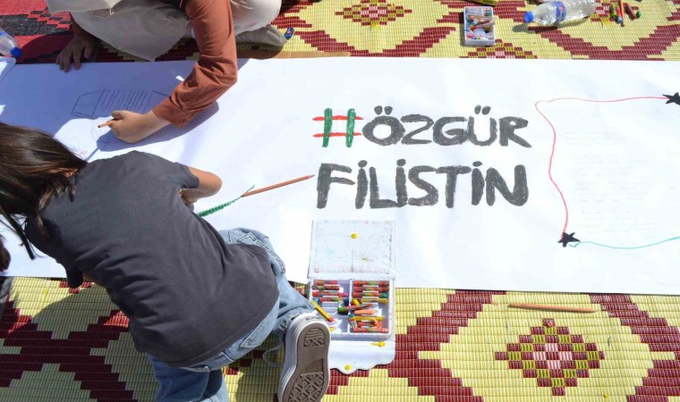 Balıkesir’de bir araya gelen çocuklar ve yetişkinler, İsrail’in Filistin’e karşı gerçekleştirdiği saldırılara tepki göstermek ve bu konuda farkındalık oluşturmak amacıyla anlamlı bir etkinlik düzenledi. Etkinlikte, katılımcılar duygularını ve düşüncelerini resimlerle ifade etti.