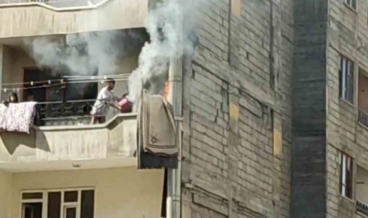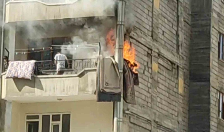 Van’ın merkez İpekyolu ilçesinde yabacı uyruklu bir ailenin yaşadığı evin balkonunda bulunan halılar alev alev yandı.