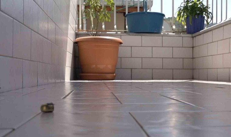 Rize’de çamaşır asmak için balkona çıkan vatandaş, sepetindeki deliği ve yerde bulunan mermi çekirdeğini görünce şoke oldu.