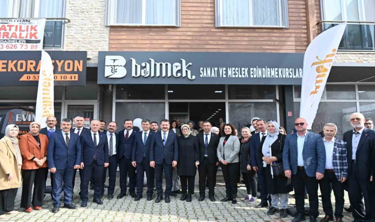 Hobileri mesleğe dönüştüren, ev hanımlarının aile ekonomisine katkı sunmasını sağlayan Büyükşehir Belediyesi Balıkesir Mesleki Eğitim Kursları (BALMEK), Gömeç’teki yeni yerinin açılışını gerçekleştirdi. 1 idari ofis ve kurs faaliyetlerinin gerçekleştirildiği 4 adet ofisten oluşan BALMEK’in açılışına Balıkesir Büyükşehir Belediye Başkanı Yücel Yılmaz’ın yanı sıra; AK Parti Genel Başkan Yardımcısı Belgin Uygur, MHP Balıkesir Milletvekili Ekrem Gökay Yüksel, kaymakamlar, MHP İl Başkanı Niyazi Tunç, AK Parti Gömeç İlçe Başkanı Aytekin Öz, MHP Gömeç İlçe Başkanı Muammer Birdar, ilçe milli eğitim müdürleri, kursiyerler, eğitmenler ve vatandaşlar katıldı.