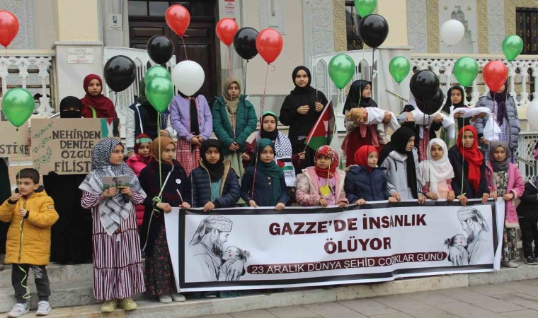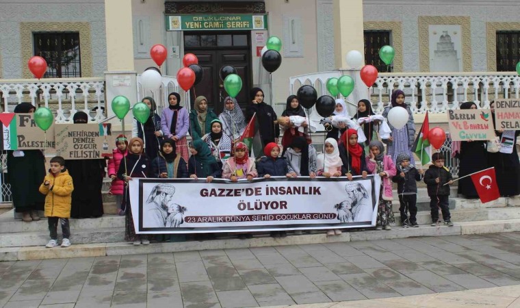 Denizli’de 10 sivil toplum kuruluşunun desteğiyle Delikliçınar Yeni Camisi önünde “Gazze’de Çocuk Olmak” konulu basın açıklaması yapıldı. “Gazze’de İnsanlık ölüyor” yazılı pankart taşıyan onlarca çocuk, İsrail vahşetini protesto etti.