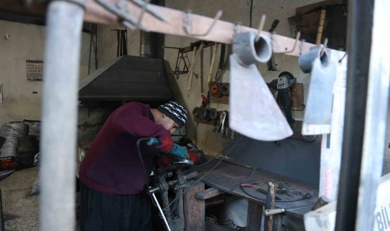 Kozan’da mesleğin son ustaları olarak atalarından yadigar bıçak, balta ve demir ustaları gelişen teknolojiye direnerek el emeği üretimi sürdürürken bölgenin coğrafi işaret ile markalaşan Tapan Bıçağını mesaisinin yerini kışın balta üretimi alıyor.