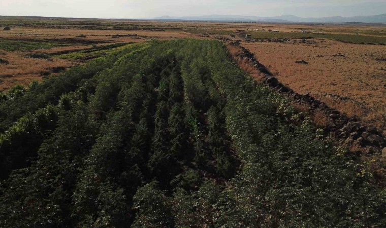 Şanlıurfa’nın Siverek ilçesinde bamya tarlasında ekili vaziyette 352 kök kenevir bitkisi ele geçirildi.