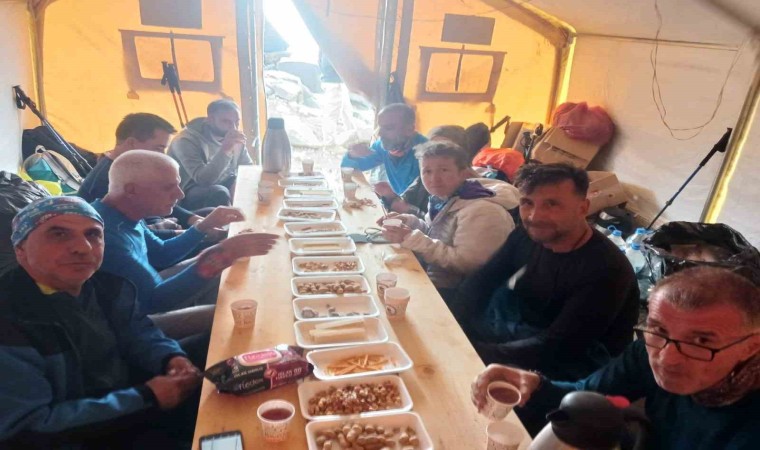 Ağrı Dağı 3200 metre kampında ilk molalarını veren ekip ertesi gün 4200 metre kampına yürüdü.
