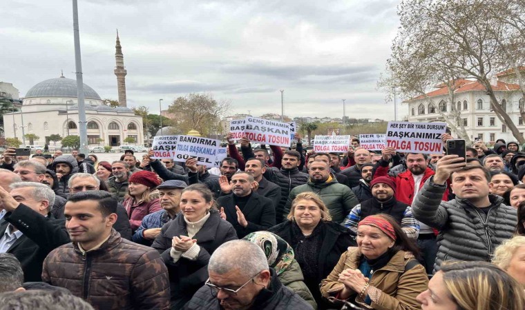 Tosun, konuşmasını tamamladıktan sonra parti binası önünde toplanan kalabalığı selamladı.