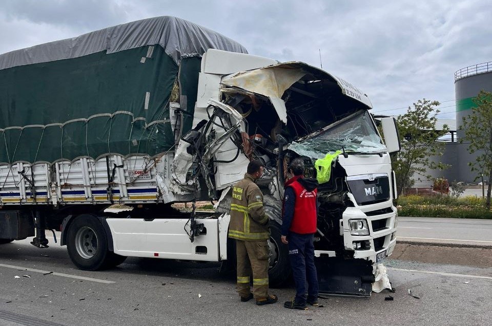 BALIKESİR'İN BANDIRMA İLÇESİ BANDIRMA-ÇANAKKALE KARAYOLUNDA EDİNCİK KAVŞAĞINDA İKİ TIRIN KARIŞTIĞI TRAFİK KAZASINDA SÜRÜCÜLER HAFİF YARALANDI.