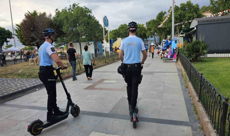 Bandırma İlçe Emniyet Müdürlüğüne bağlı scooterlı polis timleri, sahillerin güvenlik ve asayişinin sağlanması için görevde.