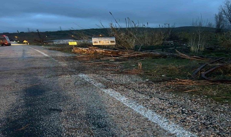 Balıkesir’in Bandırma ve Erdek ilçelerinde dün akşam saatlerinde etkili olan fırtına, günlük hayatı olumsuz etkiledi. Hızı saatte 70 kilometreyi bulan rüzgar nedeniyle birçok ağacın devrildiği, bazı iş yerlerinin çatı ve tabelalarının uçtuğu gözlemlendi.