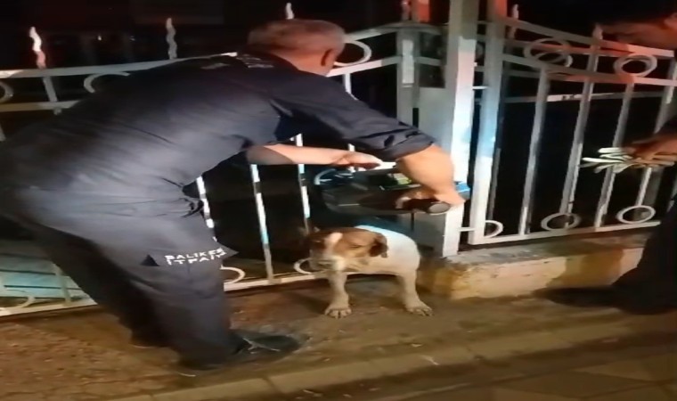 Balıkesir’in Bandırma ilçesinde, demir parmaklıklara sıkışan bir köpek, itfaiye ekipleri tarafından kurtarıldı.