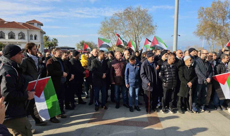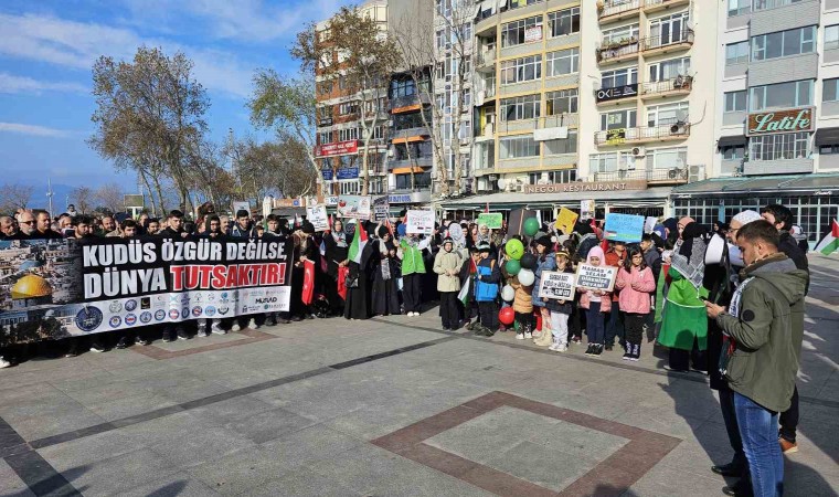 Balıkesir’in Bandırma ilçesinde 10 Aralık İnsan Hakları Günü’nde İsrail’e tepki, Filistin’e destek amacıyla yürüyüş gerçekleştirildi.
