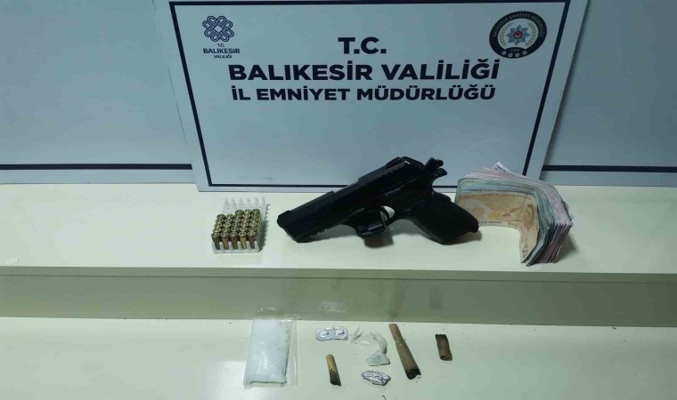 Yapılan kontroller sonucunda suç unsuru olarak kabul edilen; 3 adet ruhsatsız tabanca, 1 adet kuru sıkı tabanca, 9 adet ruhsatsız tüfek, 21 adet 7,65mm tabanca fişeği, 238 adet 9mm tabanca fişeği, 28,4 gram metanfetamin, 3,34 gram tütünle karıştırılmış esrar, 6.640 lira para, 5,5 Lt sahte rakı, 5 Lt etil alkol, 3 Lt sahte viski, 1,5 Lt sahte votka ele geçirildi.