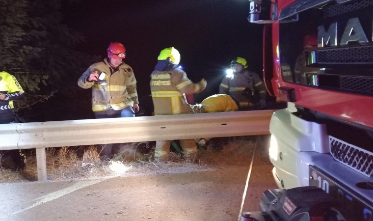 Edinilen bilgiye göre, Bandırma-Çanakkale karayolu merinos çiftliği mevkiinde 10 PH 131 plakalı araç kontrolden çıkarak yol kenarına uçtu. Araçta sıkışan R.K. ve E.K. Bandırma İtfaiye ekipleri tarafından sıkıştıkları yerden kurtarılarak sağlık ekiplerine teslim edildi. 112 Acil Sağlık Ekipleri tarafından yaralılar Bandırma Eğitim ve Araştırma Hastanesine kaldırılarak tedavi altına alındı