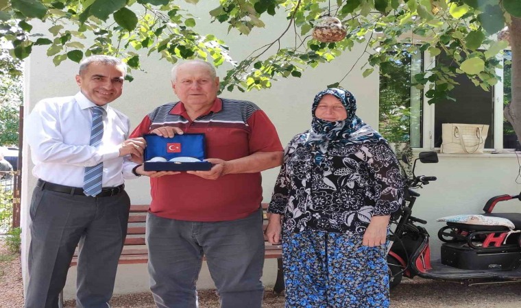 Aynı mahallede ikamet eden Kıbrıs Gazisi Seyfi Aydın’ı da ziyaret eden, Kaymakam Atasoy, kendilerine Milli Mücadele Madalyası ve Berat takdim etti.
