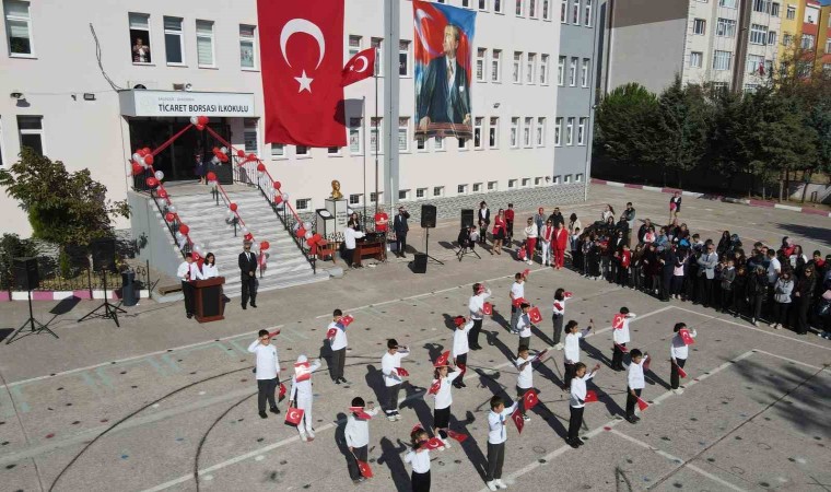 Balıkesir’in Bandırma ilçesinde, Ticaret Borsası İlkokulu ve Ortaokulu öğrencileri, Cumhuriyet’in 101’inci yılı etkinlikleri kapsamında "Ay Yıldız" koreografisi oluşturdu.