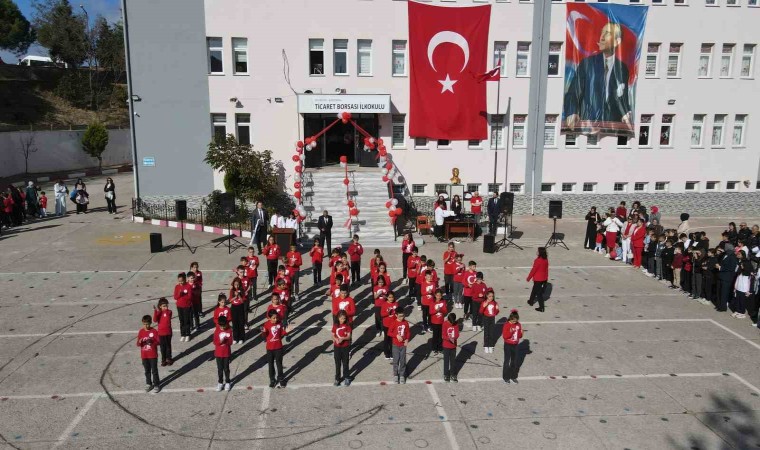 Ticaret Borsası İlkokulu bahçesinde bir araya gelen 300 öğrenci, öğretmenlerinin koordinasyonunda koreografi çalışması gerçekleştirdi.