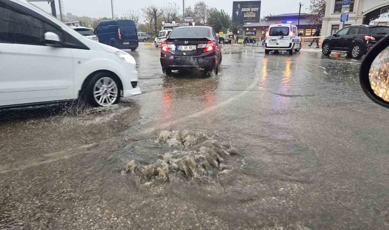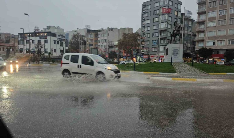 Balıkesir’in Bandırma ilçesinde sabah saatlerinde etkili olan yoğun sağanak yağış, hayatı olumsuz etkiledi. Şiddetli yağmur, cadde ve sokakları göle çevirdi.