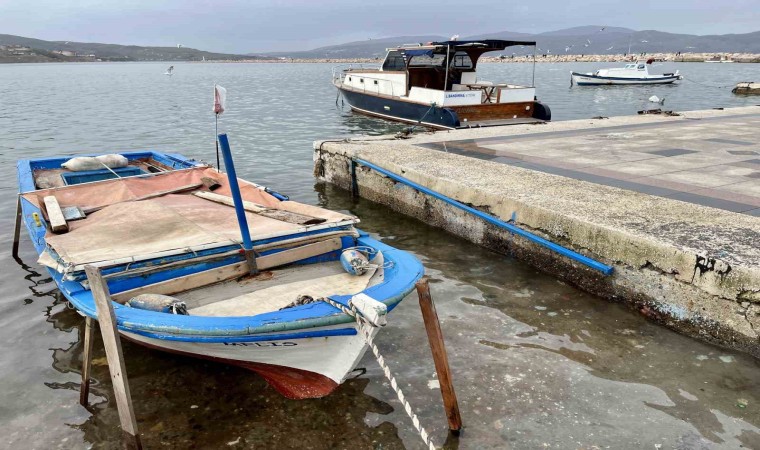 Balıkesir’in Bandırma ilçesinde, şiddetli yağış ve fırtına sonucu, onarım için karaya çekilen kayıklar deniz suyunun içinde kaldı.