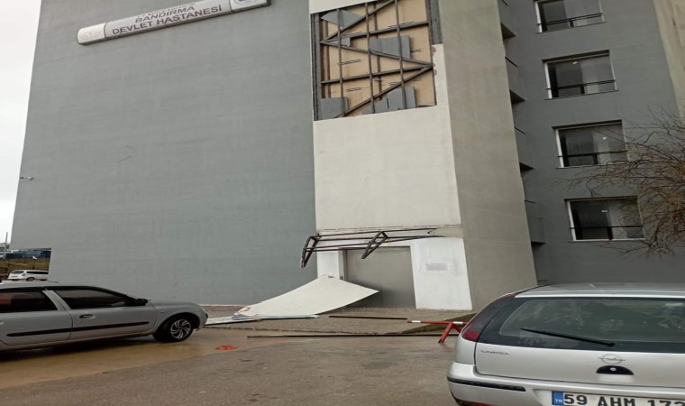Edinilen bilgilere göre, akşam saatlerinde zaman zaman saatteki hızı 60 kilometreyi aşan rüzgar hastanenin dış kaplamasını uçurdu. Kaplamanın düştüğü sırada kimsenin olmaması muhtemel faciayı önledi. Hastane yönetimi ivedilikle önlem aldı.