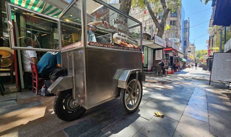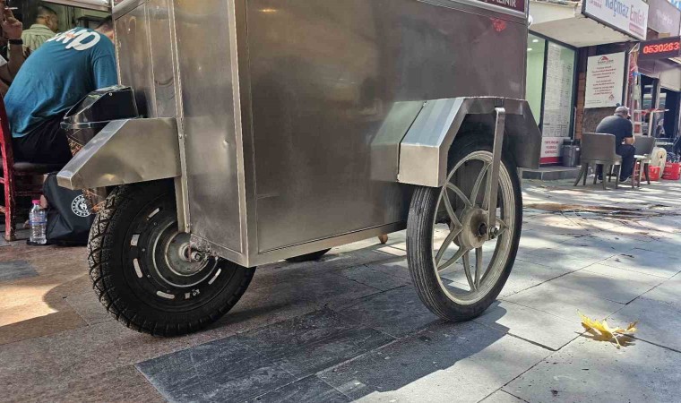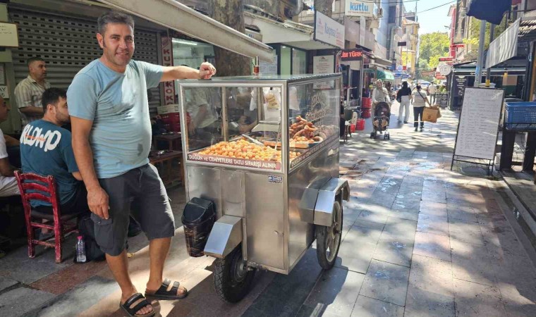 Balıkesir’in Bandırma ilçesinde 18 yıldır tatlı işiyle meşgul olan Adanalı Mustafa Türkmen, seyyar aracına elektrikli sistem yaparak motosiklet mantığıyla işleyen bir sistem kurdu.