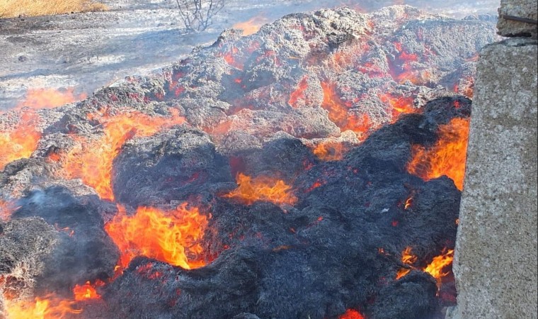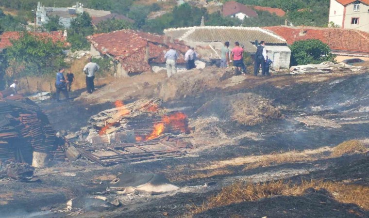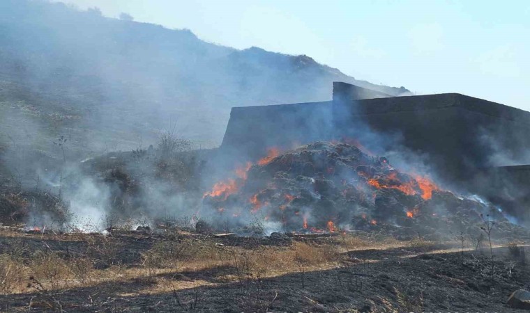 Cam şişe parçaları nedeniyle çıktığı düşünülen yangın sonucu, herhangi bir yaralanma ya da can kaybı meydana gelmezken çok sayıda saman balyasının yandığı bildirildi.