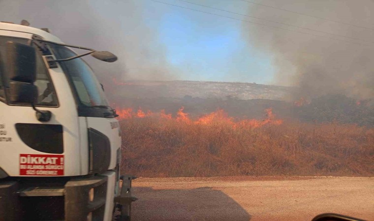Balıkesir’in Bandırma ilçesindeki bir samanlıkta çıkarak büyüyen yangın yaklaşık bin dönümlük araziyi etkiledi.