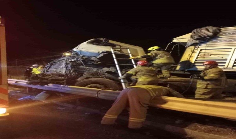 Balıkesir’in Bandırma ilçesinde, Erdek istikametine gitmekte olan kamyon kavşakta yoldan çıkarak yönlendirme tabelasına çarptı. Kazada araç içinde sıkışan şoför ağır yaralandı.