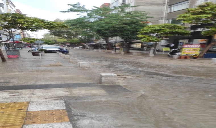 Balıkesir’in Bandırma ilçesinde sabah saatlerinde aniden başlayan yağmur hayatı olumsuz etkiledi. 15 dakika süren yağışta yollar göle döndü.
