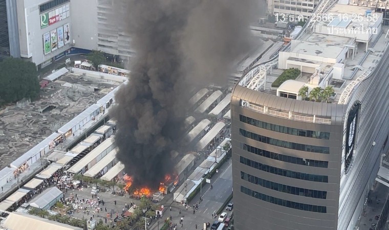 Tayland’ın başkenti Bangkok’ta bulunan ünlü pazar yerinde öğle saatlerinde çıkan yangın çıktı. Yangın bölgede paniğe neden oldu.