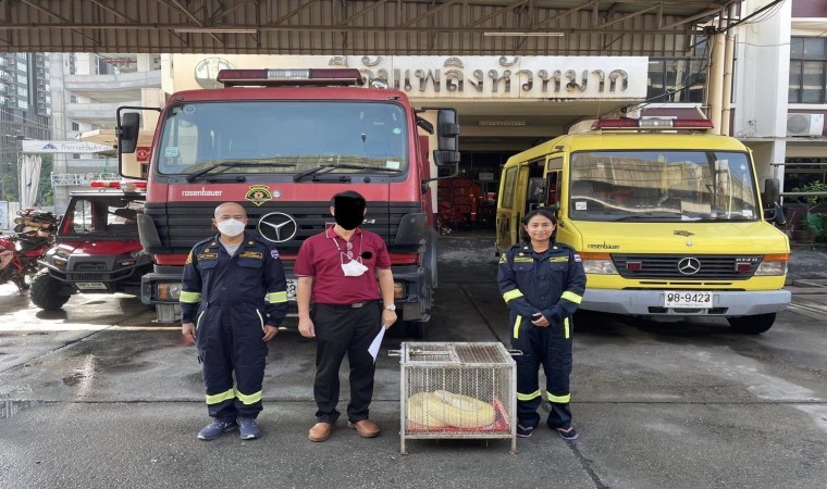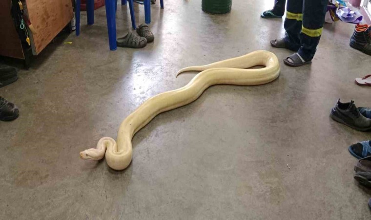 Bangkok’un Huamark bölgesi itfaiye ekipleri, dün bir sokakta dev bir piton görüldüğü üzerine ihbar aldı. Olay yerine gelen itfaiye ekipleri ile uzman bir ekip tarafından kısa sürede yakalanan yaklaşık 4 metre uzunluğundaki yılanın, zehirsiz ve egzotik bir tür olan albino pitonu olduğu belirtildi.