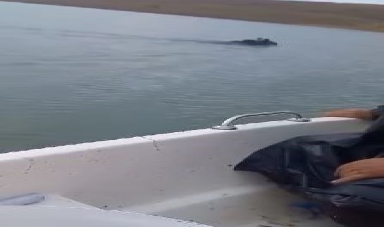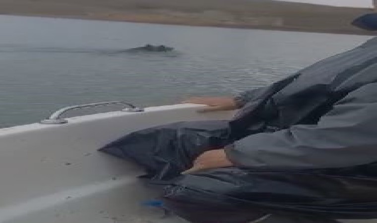 Elazığ’da baraj gölünde yüzerek karşıya geçmeye çalışan boz ayı, balıkçılar tarafından görüntülendi.