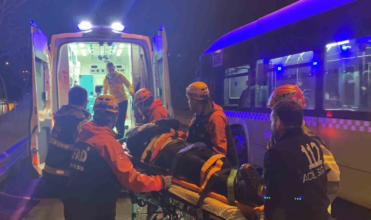 Kaza, Tepeköy Mahallesi Kurtuluş Bulvarı İzmit istikametinde meydana geldi. Edinilen bilgiye göre, E.Ü. idaresindeki iş makinesi yağmur sebebiyle kayganlaşan yolda sürücüsünün kontrolünden çıkarak bariyere çarptı. Çarpmanın şiddetiyle iş makinesi refüje devrildi. Sürücü E.Ü. ve B.K. isimli yolcu yan vaziyette duran iş makinesinde sıkıştı. Kazayı gören çevredeki vatandaşlar 112 Acil Çağrı Merkezine ihbara bulundu. İhbar üzerine adrese itfaiye, sağlık, polis, jandarma ve Afet ve Acil Durum Yönetimi Başkanlığı (AFAD) ekipleri sevk edildi. İş makinesinden çıkartılan E.Ü. ve B.K. sağlık ekiplerince ilk müdahalelerinin ardından hastaneye kaldırıldı.
