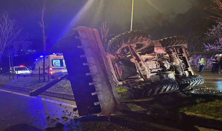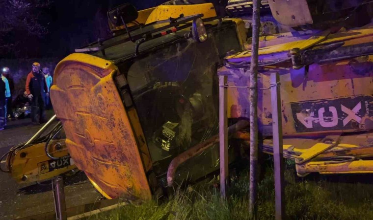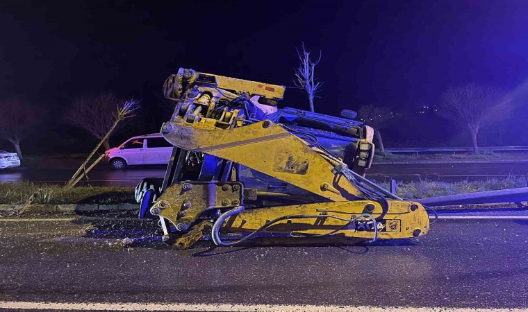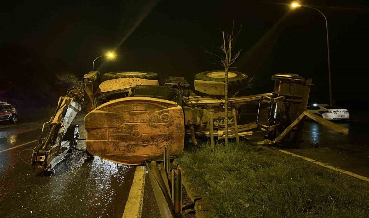 Kocaeli’nin İzmit ilçesinde yağmur sebebiyle kontrolden çıkan iş makinesi bariyere çarpıp refüje devrildi. Kazada 2 kişi yaralandı.