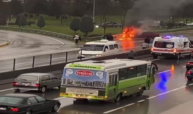 Kocaeli’nin Gölcük ilçesinde sürücünün hakimiyetini kaybettiği otomobil önce bariyere çarptı, ardından alev aldı. Alev topuna dönen aracı itfaiye ekipleri söndürdü.