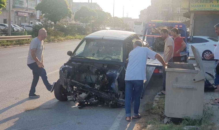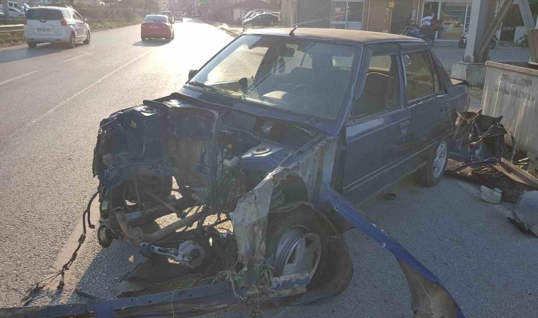 Samsun’da kontrolden çıkarak yol kenarındaki bariyerlere çarpan otomobilin motoru yerinden fırladı.