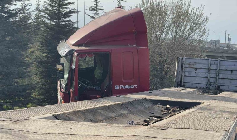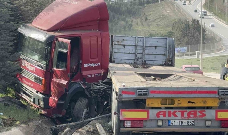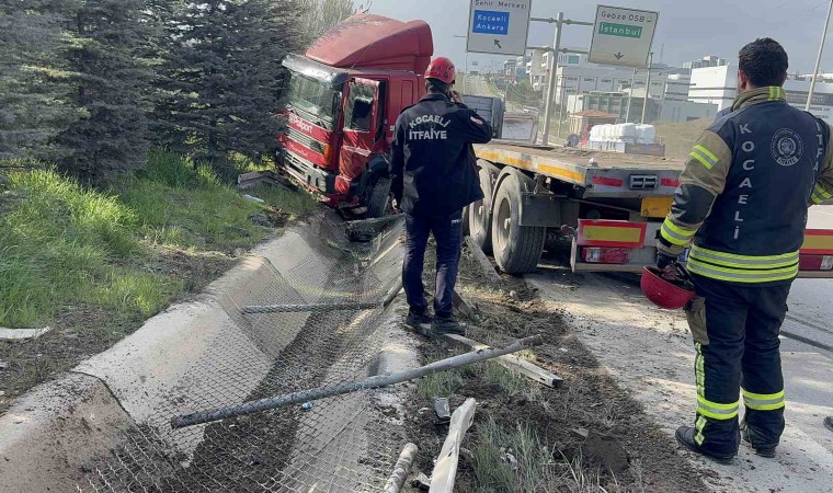 Kocaeli’nin Gebze ilçesinde bariyerlere çarpan tır, makaslayarak su kanalına girdi. Kazada sürücü yaralandı.