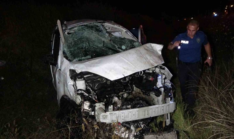 Antalya’nın Manavgat ilçesinde sürücüsünün direksiyon hakimiyetini kaybetmesi sonucu yoldan çıkan hafif ticari araç, bariyerleri aştıktan sonra taklalar atarak yaklaşık 100 metre savruldu. Kaza yapan aracın sürücüsü ve araçta yolcu olarak bulunan Danimarkalı genç yaralanırken, aracın kaportası ve motoru bulunduğu yerden parçalar halinde çıkarılabildi.