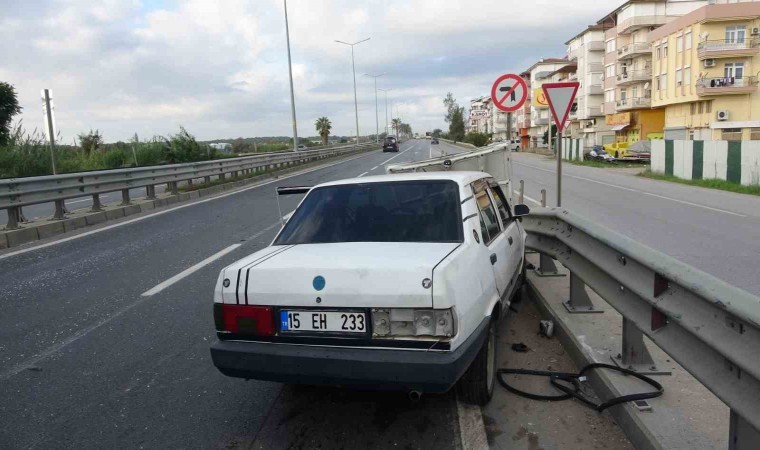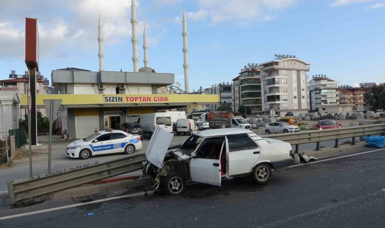 Antalya’nın Manavgat ilçesinde bariyerlere çarpan otomobil, araçtan yola fırlayan sürücüsüne çarparak ağır yaralanmasına neden oldu.