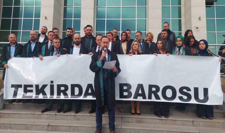Tekirdağ Barosuna bağlı avukatlar, İsrail’in Gazze’ye yönelik saldırılarına tepki göstermek ve bu duruma suç duyurusunda bulunmak üzere Tekirdağ Adliyesinde bir araya geldi. Baro Başkanı Avukat Egemen Gürcün, suç duyurusu dilekçesini Başsavcılığa vererek adliyenin önünde açıklamada bulundu.