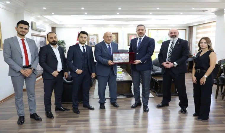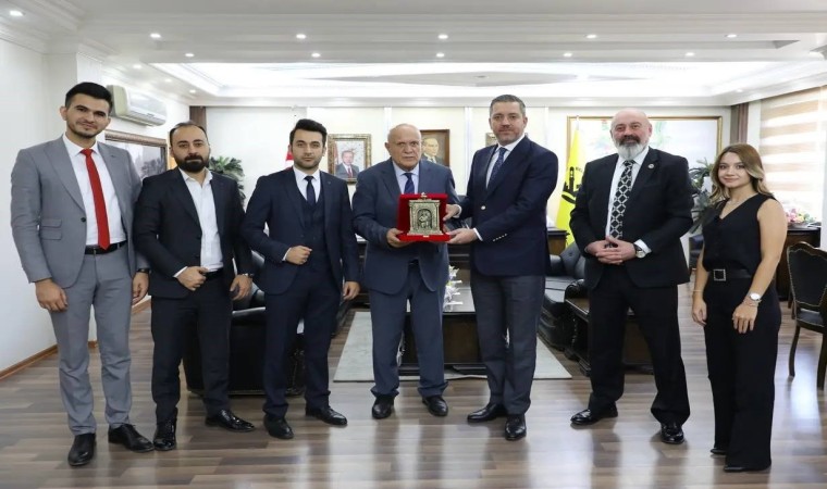 Başkan Pekmezci’ye kendilerine gösterdiği ilgi ve misafirperverlikten dolayı teşekkür eden Sağkan ise çalışmalarında başarı temennisinde bulunarak plaket takdim etti.